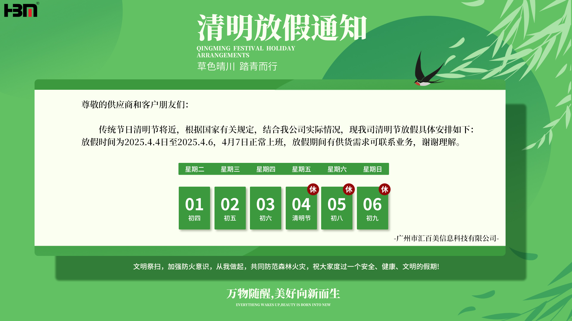 • 匯百美2025清明節放假通知